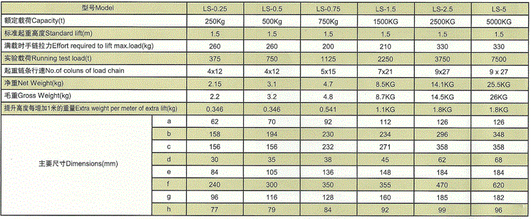LS手扳葫蘆參數(shù):