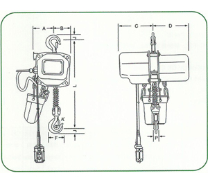 * 極限開關(guān):吊上吊下都有極限開關(guān)裝置,使電機自動停止,防止鏈條超出,確保安全