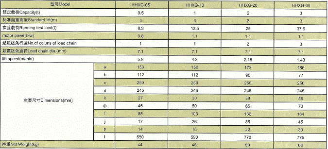 HHXG 環(huán)鏈電動葫蘆參數(shù):